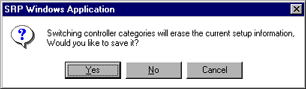Note: To switch to a different controller at another time choose Setup from the main menu, then Controller Model. When this is done a reference screen will appear on the screen prompting you to save your setup. See "Saving Your Watering Schedule", for more information on how to save your setup. |