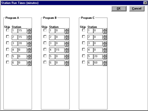You can return at any time and change any of the run times you've set. To change run times at a later time choose Setup, then Station Run Times (or press Alt-S-R).
